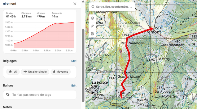 Niremont    480 m.   F / S2                                                                                     Fréquentation:  Moyenne par bon enneigement